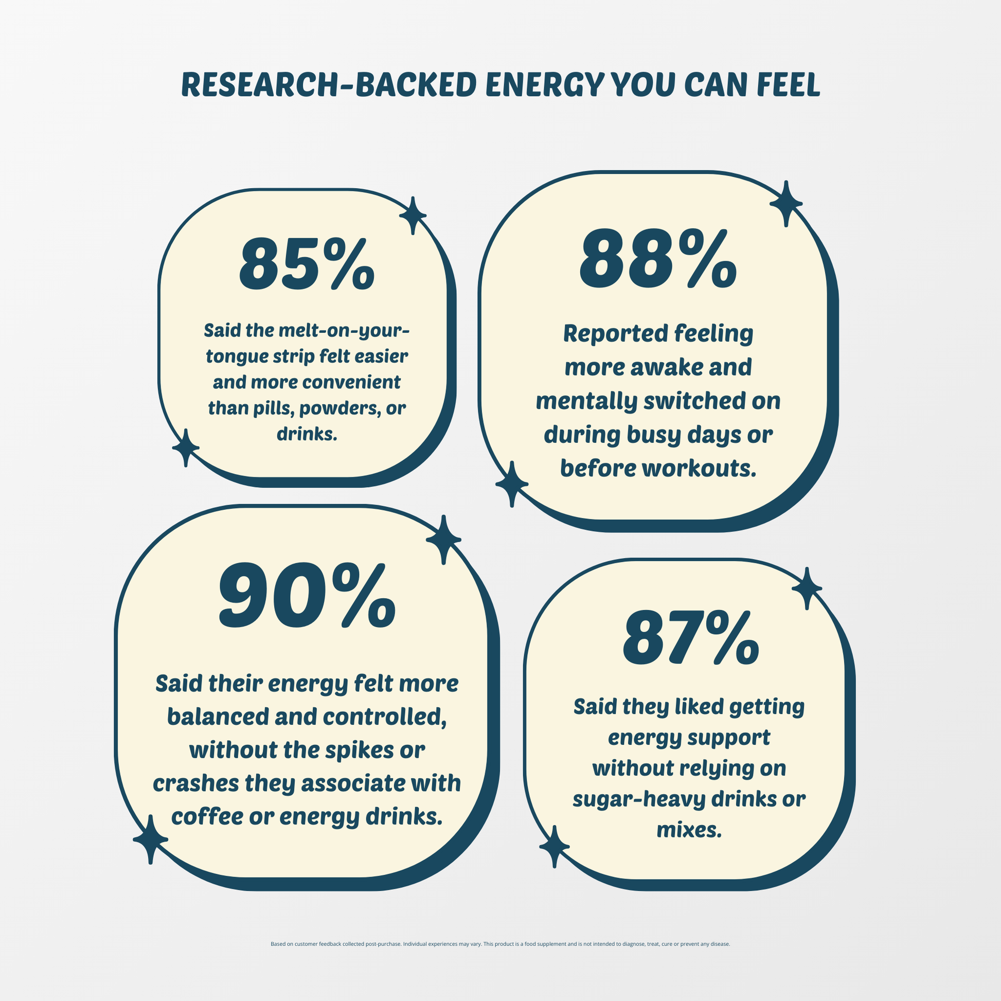 Each strip contains a thoughtfully formulated blend of green tea caffeine, L-theanine, and vitamin B12 — three ingredients commonly used in energy-focused wellness supplements. This clean, minimalist formula is designed to fit seamlessly into modern routines without overcomplicating your day.