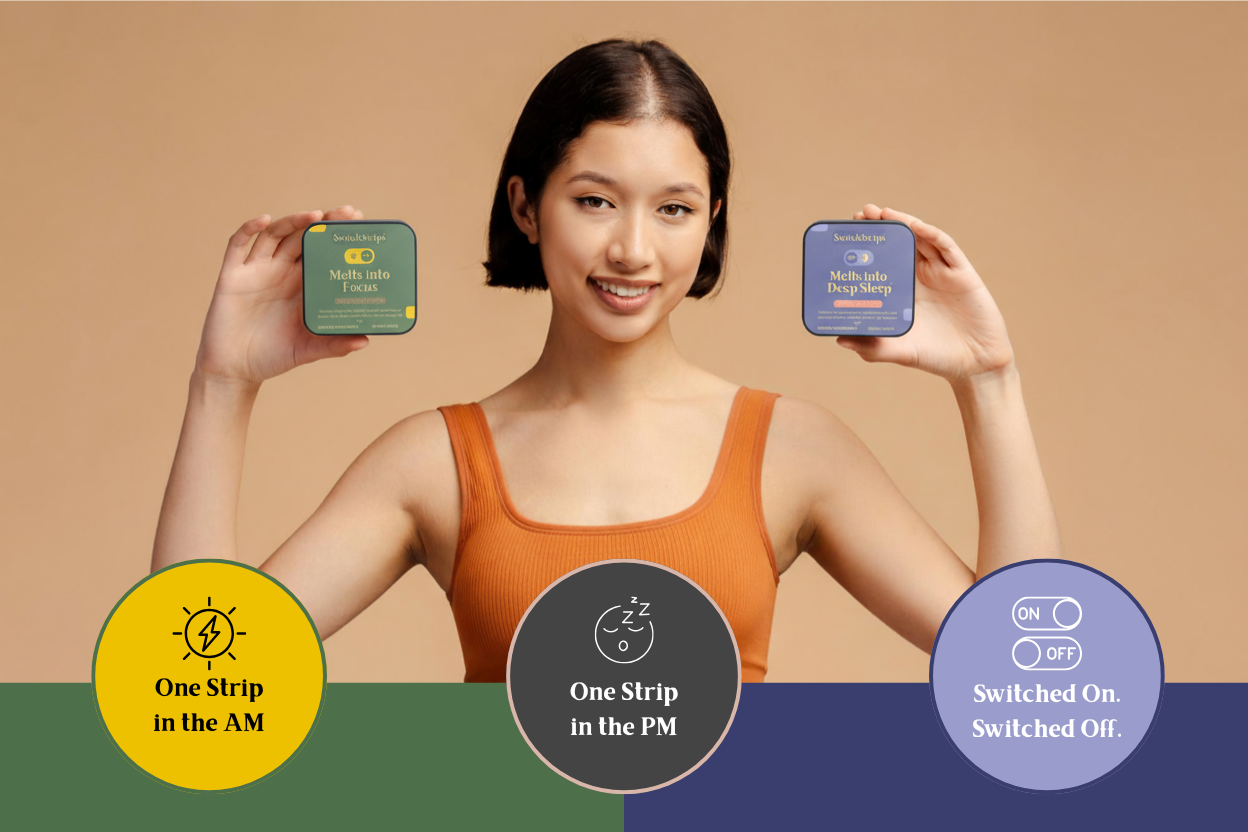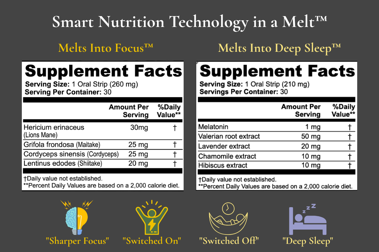 All it take is just one strip on your tongue in the AM to generate 5-6+ hours of focus & one strip on your tongue in the PM to switch you off like a light.